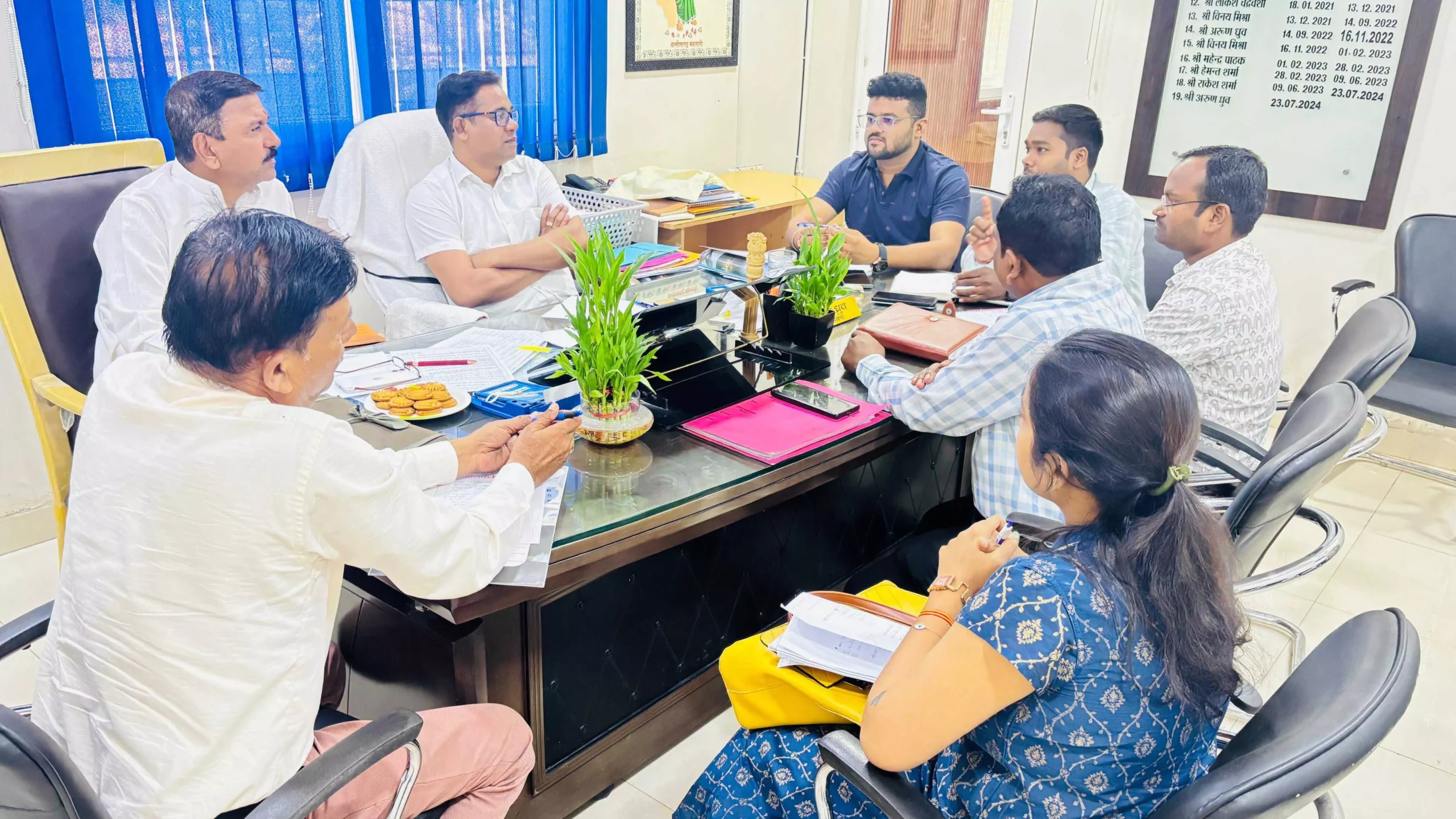 रायपुर। आज नगर पालिक निगम रायपुर के जोन क्रमांक 4 के जोन अध्यक्ष मुरली शर्मा ने जोन 4 कार्यालय में जोन कमिश्नर अरुण ध्रुव, कार्यपालन अभियंता शेखर सिंह, सहायक अभियंता दीपक देवांगन सहित अन्य जोन अधिकारियों की उपस्थिति में बैठक हुई.