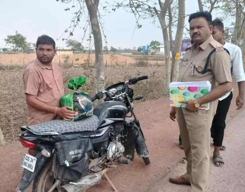 कुरूद। मोटर सायकल में अवैध रूप से शराब परिवहन कर,बिक्री करने ले जा रहे आरोपी को गिरफ्तार कर जेल भेजा गया है। कुरूद पुलिस को मुखबिर से सूचना मिली की एक व्यक्ति एक बजाज प्लेटिना मो०सा० क्र० CG 04 MC 0692 में पेट्रोल टंकी के उपर हरे रंग के प्लास्टिक बोरी में शराब रखकर ग्राम भरदा मोड़ के तरफ जा रहा है की सूचना पर हमराह स्टॉफ पहुंचकर बताये बजाज प्लेटिना मो०सा० क्र० CG 04 MC 0692 में पेट्रोल टंकी के उपर हरे रंग के प्लास्टिक बोरी रखकर ले जा रहा था, जिसको पकड़कर उनका नाम पता पूछने पर अपना अपना नाम प्रकाश सोनकर पिता पंचू राम सोनकर निवासी नारी का रहने वाले बताया।