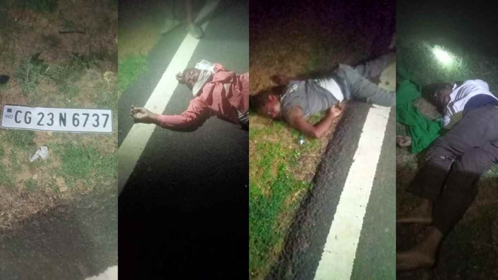 मिली जानकारी के मुताबिक, एक बाइक में सवार व्यक्तियों को कार वाहन क्रमांक सीजी 23एन6737 ने टक्कर मारकर मौके से भाग निकली. टक्कर इतनी जोरदार थी कि बाइक सवार तीनों की घटना स्थल पर ही मौत हो गई. मृतक की पहचान पंचायत सचिव छबि नायक, मूंगिया निवासी पूर्व पंचायत प्रतिनिधि गणपति नायक और मुखागुड़ा के महेश कश्यप के रूप में की गई है. थाना प्रभारी फैजुल हुडा शाह ने घटना की पुष्टि की है. थाना प्रभारी ने बताया कि नम्बर प्लेट के आधार पर वाहन की पहचान की जा रही है. बाइक सवार तीनों युवकों को एम्बुलेंस से देवभोग अस्पताल लाया गया, जहां तीनों को डॉक्टरों ने मृत घोषित कर दिया है.