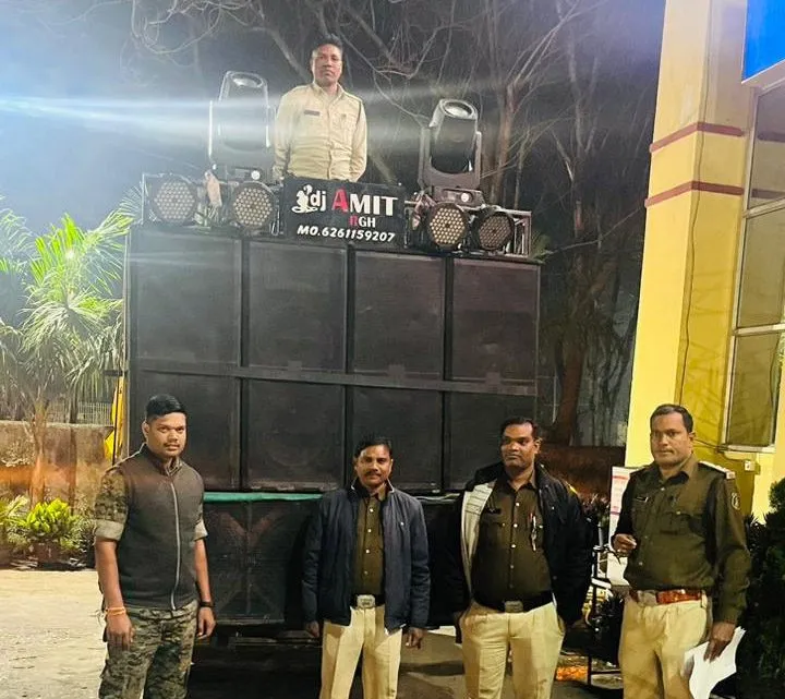 ध्वनि प्रदूषण को लेकर एसपी दिव्यांग पटेल से प्राप्त दिशा निर्देशों के क्रम में थाना प्रभारियों द्वारा सूचनाओं पर त्वरित कार्यवाही की जा रही है । इसी क्रम में थाना प्रभारी चक्रधरनगर निरीक्षक प्रशांत राव आहेर को तहसीलदार लोमश मीरी से सूचना मिली कि अंबेडकर चौक के पास शादी बारात जाने के लिए गाड़ी में डीजे सिस्टम लगाया गया है। डीजे संचालक तीव्र ध्वनि से संगीत बजा रहा है जिससे आम लोगों को परेशानी हो रही है । सूचना पर तत्काल चक्रधरनगर पुलिस की टीम मौके पर पहुंची, मौके पर डीजे संचालक अमित यादव पिता सुंदरलाल यादव उम्र 30 साल निवासी रामभांठा जगतपुर थाना सिटी कोतवाली रायगढ़ को तीव्र ध्वनि में संगीत बजाएं जाने के संबंध में अनुमति प्रस्तुत करने का गया।