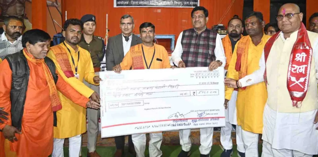 उन्होंने कार्यक्रम में पंजीकृत त्रिवेणी संगम मानस मण्डली पिकरी एवं जय मां शीतला मानस मण्डली भिलौरी को 5-5 हजार रूपए प्रोत्साहन राशि देकर सम्मानित किया। जिला प्रशासन द्वारा जिला मुख्यालय सहित विकासखंड और ग्राम पंचायतों में नागरिकों के लिए एलईडी टी.व्ही. व प्रोजेक्टर के माध्यम से प्रसारण की व्यवस्था कराई गई थी। इस अवसर पर विधायक दीपेश साहू, कलेक्टर रणबीर शर्मा, पुलिस अधीक्षक भावना गुप्ता एवं बड़ी संख्या में श्रद्धालु उपस्थित थे।