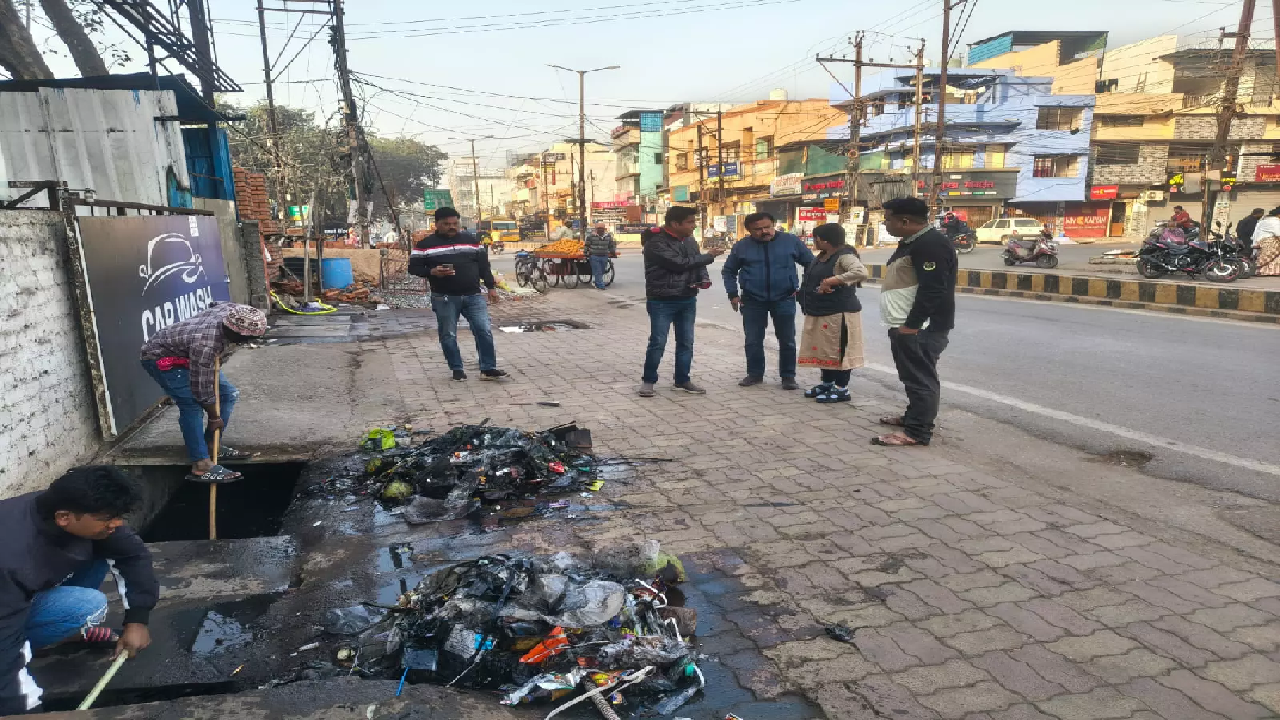 रायपुर। नगर पालिक निगम को प्राप्त जनशिकायत को तत्काल संज्ञान में लेते हुए नगर निगम आयुक्त विश्वदीप द्वारा दिए गए आदेशानुसार और नगर निगम स्वास्थ्य अधिकारी डॉ तृप्ति पाणीग्रही एवं जोन 5 जोन कमिश्नर खीरसागर नायक के निर्देशानुसार नगर निगम जोन 5 स्वास्थ्य विभाग की टीम द्वारा नगर निगम जोन क्रमांक 5 अंतर्गत ठाकुर प्यारेलाल वार्ड क्रमांक 39 के क्षेत्र में भवन स्वामी सोनू सुन्दरियां द्वारा भवन निर्माण कार्य से सम्बंधित भवन निर्माण सामग्री को नाली के ऊपर रखा गया था, जिससे कि नाली का पानी सड़क पर बहने के कारण आसपास के रहवासियों को मार्ग से आवागमन में अत्यंत असुविधा हो रही थी, इस सम्बन्ध में प्राप्त जनशिकायत औचक निरीक्षण के दौरान सम्बंधित स्थल पर सही पायी गयी.