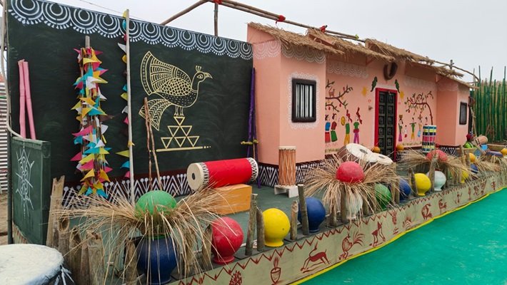 पैवेलियन के भीतर प्रवेश करते ही बायीं तरफ छत्तीसगढ़ के जीवंत ग्रामीण परिवेश को दिखाया गया है। यहां पर परंपरागत ग्रामीण जीवन के साथ ही आदिवासी कला, संस्कृति, आभूषण, वस्त्र समेत एक संपूर्ण गांव का चित्रण किया गया है।