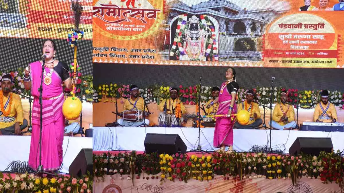 रायपुर RPF रायपुर पोस्ट प्रभारी तरुणा साहू ने अयोध्या में आयोजित महोत्सव में पंडवानी के कापालिक शैली की प्रस्तुति दी. जिसमें तरुणा ने में पाशुपत अस्त्र तपस्या के लिए शंकर अर्जुन संवाद और द्रोपदी चीर हरण का जीवंत प्रस्तुति दिया. दर्शकों ने दोनों प्रसंग का आनंद लिया. बता दें कि तरुणा पद्म विभूषण डॉक्टर तीजन बाई की शिष्या हैं. RPF निरीक्षक मंदिर हसौद पोस्ट प्रभारी तरुणा साहू का पंडवानी का आयोजन UP के संस्कृति विभाग द्वारा आयोजित था. जो कि रामलला मंदिर प्रांगण में शनिवार रात 1 बजे संपन्न हुआ. तरुणा साहू रायपुर के बसंत विहार कॉलोनी की रहने वाली हैं.