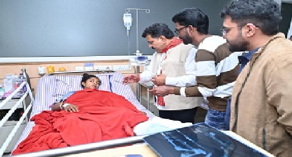 रायपुर । सुकमा जिले में गुरुवार को आईईडी ब्लास्ट में गंभीर रूप से घायल जिला पुलिस बल की महिला कांस्टेबल मुचाकी दुर्गा के स्वास्थ्य की जानकारी लेने उपमुख्यमंत्री एवं गृहमंत्री विजय शर्मा आज यहां रायपुर स्थित रामकृष्ण हॉस्पिटल पहुंचे। उन्होंने घायल महिला कांस्टेबल दुर्गा से मिले और उनके स्वास्थ्य की जानकारी ली। इस दौरान उपमुख्यमंत्री ने चिकित्सकों से चर्चा की और कांस्टेबल दुर्गा का हरसंभव बेहतर इलाज करने के निर्देश दिए। चिकित्सकों ने बताया कि मुचाकी दुर्गा की स्थिति खतरे से बाहर हैं। गंभीर चोटों के कारण उन्हें स्वस्थ होने में समय लगेगा।