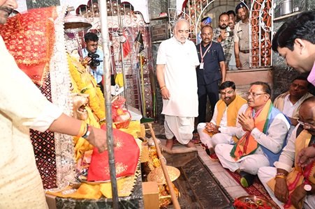 दुर्ग । मुख्यमंत्री विष्णुदेव साय आज नगर पालिक निगम दुर्ग अंतर्गत विकास कार्यों के भूमिपूजन के पहले दुर्ग के प्राचीन चण्डी मंदिर में पूजा अर्चना कर प्रदेश वासियों के लिए सुख-समृद्धि और खुशहाली की कामना की।