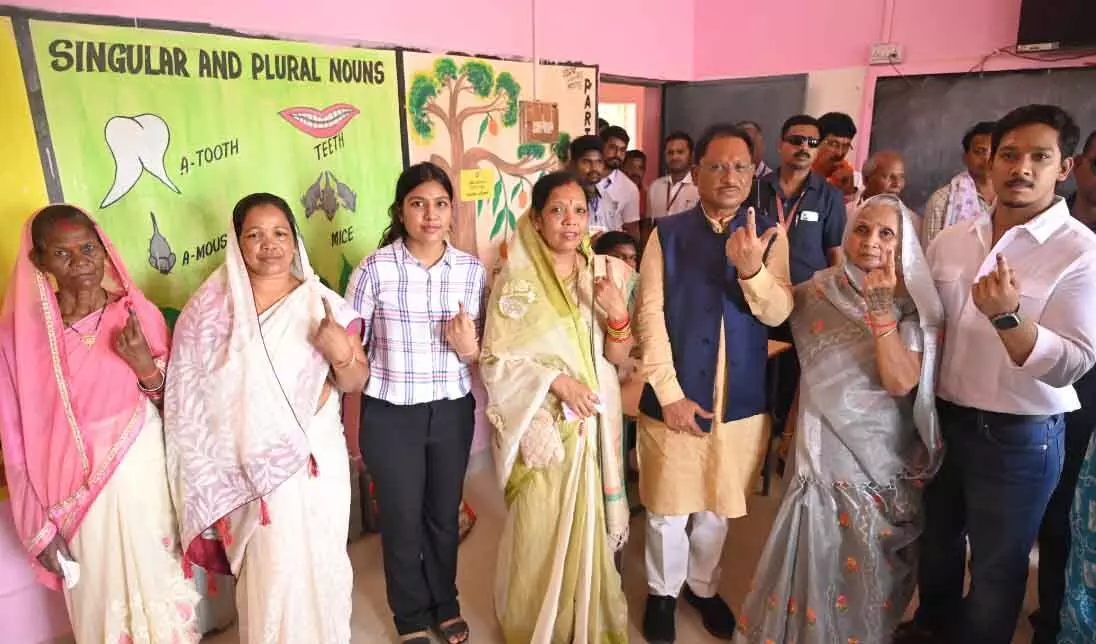 रायपुर। मुख्यमंत्री विष्णु देव साय ने आज अपने गृह ग्राम बगिया के प्राथमिक शाला बूथ क्रमांक 49 में सपरिवार मतदान किया। मतदान के लिए श्री साय, मां जसमनी साय, पत्नी कौशल्या साय, बेटा तोशेंद्र साय, बेटी स्मृति साय, बहु राजकुमारी साय सहित पूरे परिवार ने लाइन में लगकर अपने बारी का इंतजार किया और मतदान किया। मतदान के बाद सीएम साय ने कहा कि जन-जन में मोदी और भाजपा के प्रति उत्साह है। विकसित भारत-विकसित छत्तीसगढ़ के लिए लोग कमल छाप पर जम कर मतदान कर रहे हैं। आगामी 4 जून को 400 पार होगा और प्रदेश की सभी 11 सीटें हम जीतेंगे। गौरतलब है कि आज लोकसभा चुनाव के तीसरे चरण में प्रदेश की 7 सीटों सहित देश के 93 सीटों पर मतदान हो रहा है। इसके साथ छत्तीसगढ़ में लोकसभा चुनाव संपन्न हो जाएंगे। आज प्रदेश की दुर्ग, रायपुर, बिलासपुर, कोरबा, रायगढ़, सरगुजा, जांजगीर-चांपा लोकसभा सीटों के लिए मतदान हो रहा है।
