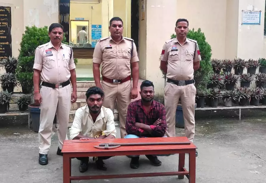 मिली जानकारी के अनुसार उप निरीक्षक गेंदलाल साहू को सूचना मिली कि मानकेश्वरी मंदिर के मेला में दो युवक फरसा लेकर लोगों को डराने-धमकाने का काम कर रहे हैं। सूचना पर पुलिस टीम तत्काल मौके पर पहुंची और घेराबंदी कर दोनों आरोपियों को पकड़ा। पूछताछ में हाथ में फरसा लिए युवक ने अपना नाम पुरोहित चौहान पिता सालिकराम चौहान उम्र 28 वर्ष निवासी जामगांव कोलाईबहाल थाना चक्रधरनगर बताया, जबकि उसका साथी संजू मिर्धा पिता ईश्वर मिर्धा उम्र 25 वर्ष निवासी सराईपाली थाना चक्रधरनगर का होना स्वीकार किया। मौके पर मौजूद गवाहों ने भी पुष्टि की कि दोनों युवक फरसा लहराते हुए लोगों को धमका रहे थे। पुलिस ने पुरोहित चौहान के कब्जे से लोहे का धारदार फरसा जब्त किया और दोनों के विरुद्ध धारा 25, 27 आर्म्स एक्ट तथा 3(5) बीएनएस के तहत अपराध दर्ज कर आरोपियों को रिमांड पर भेज दिया है। कार्रवाई उप निरीक्षक गेंदलाल साहू के नेतृत्व में सहायक उप निरीक्षक आशिक रात्रे, आरक्षक अभय यादव और चंद्र कुमार बंजारे की टीम ने की।