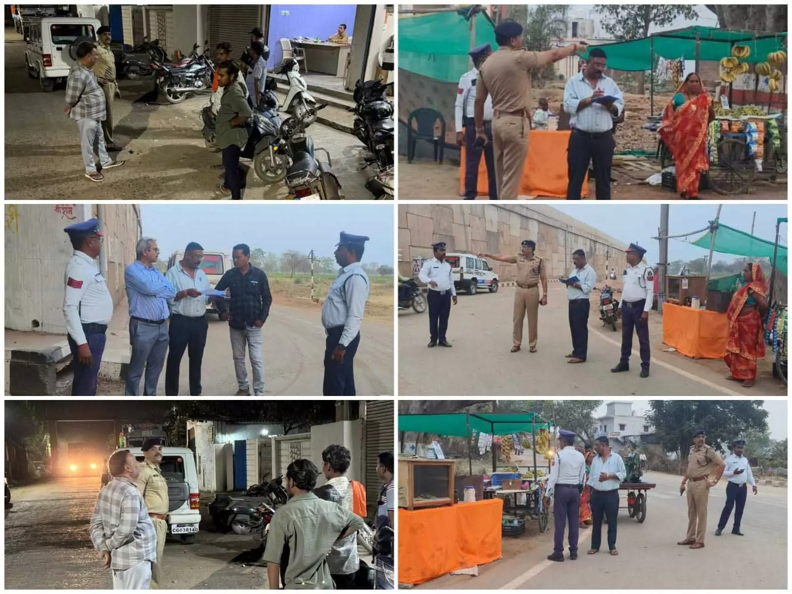 ब्रीज के पास रोड किनारे गांव के लोगो के द्वारा चाय ठेला, फल दुकान, लगाकर अतिक्रमण कर मार्ग को बाधित करते पाये गये जिन्हे ब्रीज के पास रोड किनारे से अपने दुकान को हटाने समझाईश दिया गया। इसीक्रम में औयोगिक वार्ड अग्रसेन भवन के आसपास मार्ग किनारे गैराज मालिको द्वारा अपने वाहनो को रोड किनारे खडे करने से आने जाने वाले लोगो को परेशानी का सामना करना पड रहा था जिनके सुगम आवागमन हेतु गैराज मालिको को अपने वाहन को गैराज में ले जाकर खड़े करने एवं आम रास्ते में वाहन पार्किंग नहीं करने निर्देशित किया गया।