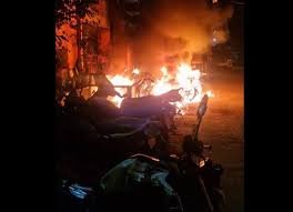 रायपुर। राजधानी रायपुर के आरडीए कॉलोनी, बोरियाखुर्द में बीती रात अज्ञात लोगों ने एक के बाद एक आठ गाड़ियों में पेट्रोल डालकर आग लगा दी. आगजनी में 7 दो पहिया और एक ऑटोरिक्शा जलकर खाक हो गए. आगजनी इतनी भयावह थी कि आग से आस-पास के घर तक जा पहुंची. पीड़ित परिवारों ने जानबूझकर आग लगाए जाने की आशंका जताई है.