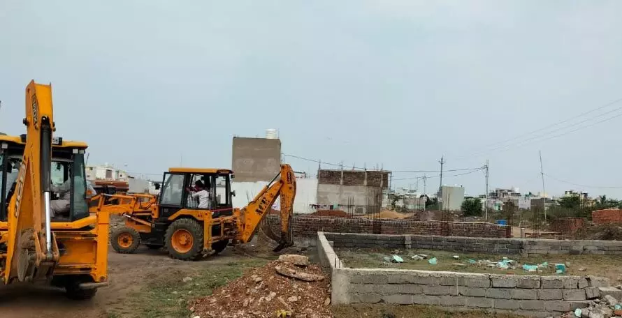 रायपुर। Raipur Municipal Corporation निगम के नगर निवेश की टीम ने वार्ड 20 के तहत कोटा में साईंनाथ कॉलोनी Sainnath Colony क्षेत्र की लगभग 3 एकड़ निजी भूमि में प्लाट कटिंग करने की गयी मार्किंग डीपीसी को तोड़ा और मुरुम रोड को काटा गया। Zone Commissioner Arun Dhruv जोन कमिश्नर अरुण ध्रुव ने बताया कि कबीर नगर फेस – 4 में अविनाश आशियाना अपार्टमेंट के पीछे लगभग 5 एकड़ निजी भूमि परकाली डस्ट डालकर बनाई जा रही नींव सहित अवैध मुरूम रोड को जेसीबी JCB से काट अवैध प्लाटिंग पर रोक लगायी गयी। जोन कमिश्नर ने रायपुर तहसीलदार Raipur Tehsildar से भूमि स्वामियों की जानकारी मांगी है। उसके बाद अवैध प्लाटिंगकर्ताओं के विरूद्ध एफआईआर दर्ज करवायी जायेगी।