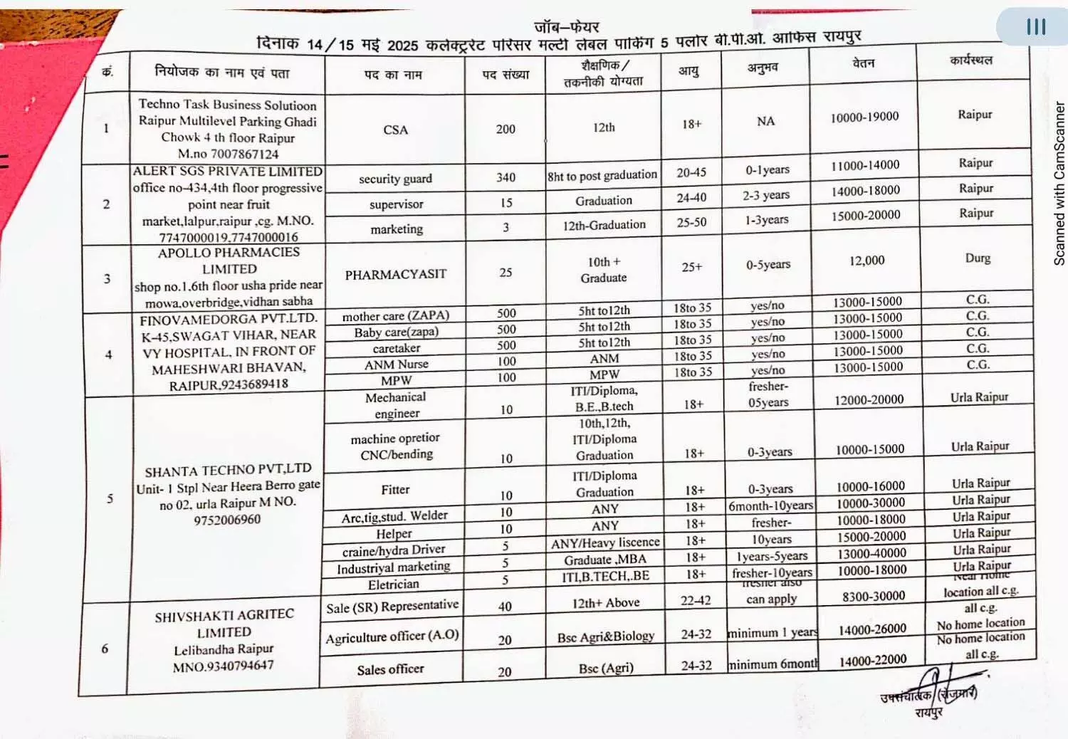 इच्छुक एवं योग्य आवेदक निर्धारित तिथि एवं स्थल पर अपने बॉयोडाटा /आधार कार्ड एवं शैक्षणिक तकनीकी योग्यता के प्रमाण पत्रों की छायाप्रति के साथ उपस्थित होना सुनिश्चित करेंगे।