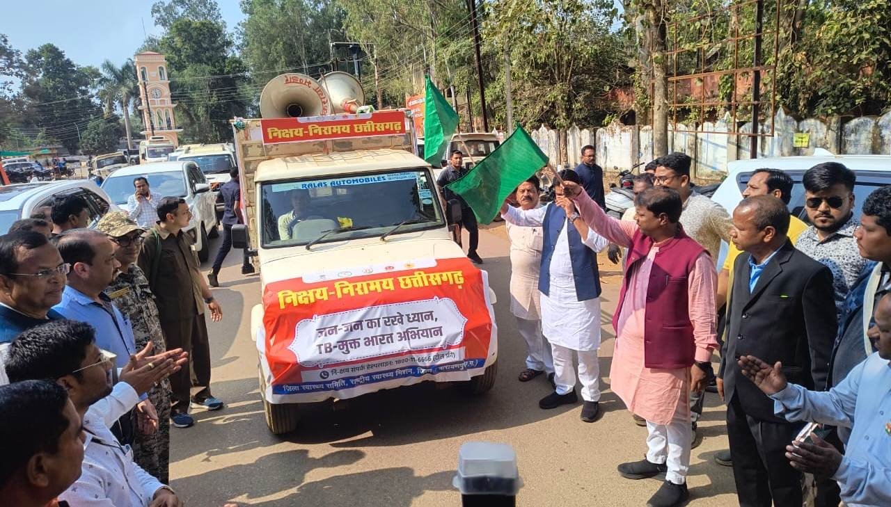 रायपुर, वन एवं जलवायु परिवर्तन, जल संसाधन, कौशल विकास, सहकारिता और संसदीय कार्य मंत्री केदार कश्यप और खेलकूद एवं युवा कल्याण, राजस्व, आपदा प्रबंधन एवं जिले के प्रभारी मंत्री टंकराम वर्मा ने आज नारायणपुर में निक्षय निरामय छत्तीसगढ़ कार्यक्रम अभियान का शुभारंभ किया। मंत्री द्वय द्वारा नारायणपुर जिले में निक्षय कार्यक्रम को सफल बनाने की अपील करते हुए निक्षय निरामय छत्तीसगढ़ प्रचार-प्रसार रथ को हरी झंड़ी दिखाकर रवाना किया। उल्लेखनीय है कि निक्षय निरामय छत्तीसगढ़ कार्यक्रम के अंतर्गत अगले 100 दिनों तक राज्य में टीबी, कुष्ठ और मलेरिया के मरीजों की पहचान की जाएगी और उनका उपचार सुनिश्चित किया जाएगा। योजना में राज्य के वृद्धजनों का भी स्वास्थ्य जांच और उपचार शामिल है।