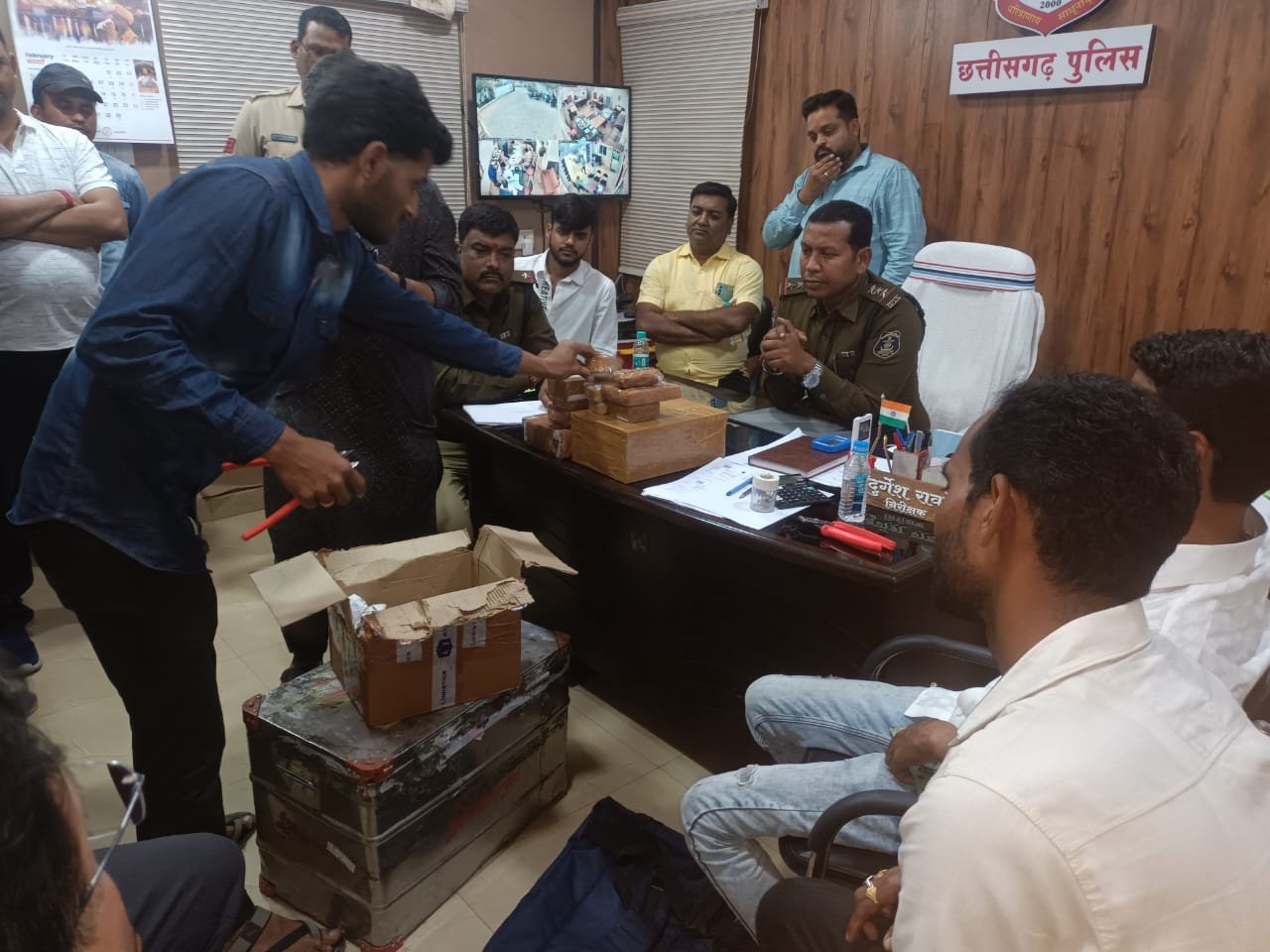 थाना टिकरापारा क्षेत्रातर्गत अंतर्राज्यीय न्यू बस स्टैण्ड भाठागांव संचालित जहां अन्य राज्यो से यात्री बसों का आना जाना रहता है। उक्त बसो का उपयोग अवैध करोबारियों द्वारा अवैध समान एक स्थान से दूसरे स्थान परिवहन करने में किया जाता है। जिस पर अतिरिक्त पुलिस अधीक्षक पश्चिम जय प्रकाश बढई, नगर पुलिस अधीक्षक पुरानीबस्ती राजेश चौधरी, तथा थाना प्रभारी टिकरापारा निरीक्षक दुर्गेश रावटे को अवैध कारोबारियों के संबंध में सूचना संकलन कर औचक बसों में संदिग्ध रूप से यात्रा करने वाले यात्रियों एवं उनके समानों को चेकिंग करने का निर्देश प्राप्त हुआ है। जिस पर वरिष्ठ अधिकारियों के निर्देशन में थाना टिकरापारा पुलिस टीम द्वारा 16 फरवरी को न्यू बस स्टैण्ड भाठागांव पहुंचकर रॉयल बस का औचक चेकिंग किया गया जिसमें एक संदिग्ध व्यक्ति एक काले बैग के साथ बैठा मिला जिसे पूछताछ करने व अपने बैंग को खोलकर चेकिंग कराने कहने पर लगातार टाल मटोल करता रहा जिस पर पुलिस को संदेह हुआ और कड़ाई से पूछताछ कर बैंग को चेक कराने कहने पर अपना बैंग खोलकर दिखाया जिसके अंदर 2 अलग अलग कार्टून में सोने के बिस्किट, ज्वेलरी कुल वजनी 4.500 किलोग्राम होना बताया। पूछताछ दौरान संदिग्ध व्यक्ति द्वारा अपना नाम भैरू लाल गुर्जर पिता सोहन लाल गुर्जर उम्र 24 साल निवासी जवारिया मेरडा खालसा मेरडा खालसा राजसमंद राजस्थान का निवासी होना बताया एवं उक्त ज्वेलरी को जय अम्बे लॉजिस्टिक कोरियर रायपुर से नागपुर के रास्ते मुंबई ले जाना बताया उक्त सामान का वैध दस्तावेज पेश करने कहने पर 04 पन्ने का दस्तावेज छायाप्रति प्रस्तुत किया। दस्तावेज असतुष्टिजन पाये जाने से 02 गवाहो के समक्ष संदेही के पास रखे 02 अलग अलग कार्टून को मौके पर ही सीलबंद कर कब्जा पुलिस लिया गया। बाद कार्यवाही हेतु वस्तु एवं सेवा कर (जीएसटी) विभाग को सौपा गया है।