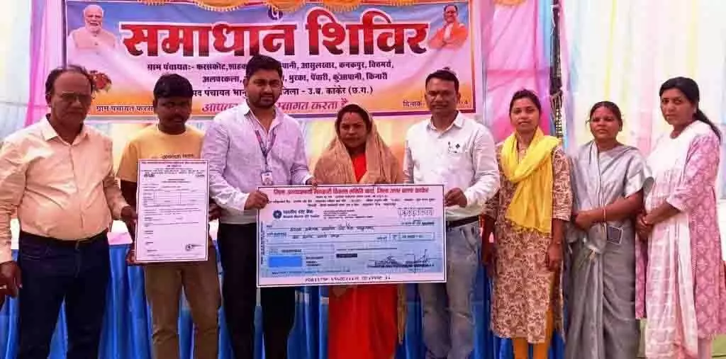 इसके तहत ग्राम आसुलखार निवासी कमलेश्वरी कोषरे को जूता-चप्पल दुकान संचालन हेतु 01 लाख 50 हजार रूपये का ऋण स्वीकृत किया गया है। समाधान शिविर में उक्त हितग्राही को अनुदान राशि 10 हजार रूपये का चेक भी प्रदान किया गया। इसी प्रकार तहसील भानुप्रतापपुर के ग्राम पण्डरीपानी निवासी शैलेन्द्र कुमार उयके को कपड़ा व्यवसाय संचालन हेतु 01 लाख 50 हजार रूपये का ऋण स्वीकृत किया गया है। इस अवसर पर जिला अंत्यावसायी सहकारी विकास समिति कांकेर के प्रभारी कार्यपालन अधिकारी आर.एस. कमल, भारतीय स्टेट बैंक आसुलखार के शाखा प्रबंधक आदित्य मेश्राम सहित विभिन्न विभाग के अधिकारी-कर्मचारी, जनप्रतिनिधि एवं ग्रामीण उपस्थित थे।