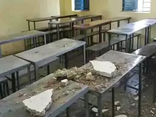 कवर्धा ब्लॉक के बहरमुड़ा शासकीय मिडिल स्कूल में बच्चे पढ़ रहे थे, तभी छत का प्लास्टर भरभराकर नीचे गिर पड़ा। गनीमत ये रही कि घटना में बच्चे बाल-बाल बच गए और उन्हें चोट नहीं आई। फिलहाल सभी बच्चों को कक्षा के बाहर निकाल लिया गया है। जानकारी के मुताबिक, गुरुवार को बहरमुड़ा गांव के शासकीय मिडिल स्कूल में रोजाना की तरह बच्चे पढ़ने के लिए आए थे। यहां क्लास में 30 बच्चे पढ़ रहे थे, तभी कुछ बच्चों के सिर पर रेत गिरने लगी। उन्होंने तुरंत टीचर को बताया। शिक्षक मे तत्काल सभी बच्चों को कक्षा से बाहर निकाला। जैसे ही बच्चे क्लास से बाहर निकले, करीब 10 फीट एरिया की छत का प्लास्टर भरभराकर गिर पड़ा। अगर वहां पर बच्चे होते, तो बड़ा हादसा हो सकता था। ये शासकीय मिडिल स्कूल काफी जर्जर हो चुका है। पिछले सत्र में स्कूल खुलने से पहले यहां की मरम्मत के लिए शासन ने 3.40 लाख रुपए भी दिए थे, लेकिन जिम्मेदारों की मिलीभगत से ठेकेदार ने भ्रष्टाचार कर राशि की बंदरबांट कर ली। जिसका खामियाजा यहां पढ़ने वाले बच्चों और शिक्षकों को भुगतना पड़ रहा है। प्रभारी जिला शिक्षा अधिकारी एमके गुप्ता ने बताया कि मेंटनेंस राशि देने के बावजूद ऐसा क्यों हुआ, इसकी जांच की जाएगी। जो भी दोषी पाया जाएगा, उसके खिलाफ कड़ी कार्रवाई किए जाने की बात उन्होंने कही है। जिले के ज्यादातर शासकीय स्कूलों में मेंटनेंस नहीं होने से बिल्डिंग जर्जर हो चुकी है। कई स्कूल तो खंडहर में तब्दील हो चुके हैं, जिन्हें डिस्मेंटल किया जाना बहुत जरूरी है, नहीं तो कभी भी बड़ा हादसा हो सकता है।