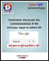 बालोद। कई बार हमें किसी बैंक या कोरियर सर्विस या किसी अन्य संस्था के customer care नंबर की आवश्यकता होती है तो हम Google या अन्य सर्च इंजन पर खोजते हैं। जो Customer care नंबर search करने पर आता है वह धोकेबाज का भी हो सकता है और उस नंबर पर संपर्क करने पर आप cyber fraud का शिकार हो सकते हैं।अतः customer care नंबर के लिए ऑफिसियल वेबसाइट का ही इस्तेमाल करें। सर्च इंजन पर पूरी तरह निर्भर न करें। बालोद पुलिस ने अपील की है कि अपनी ऑनलाइन सुरक्षा सुनिश्चित करने के लिए सत्यापित और विश्वसनीय वेबसाइट्स पर ही जाएँ।