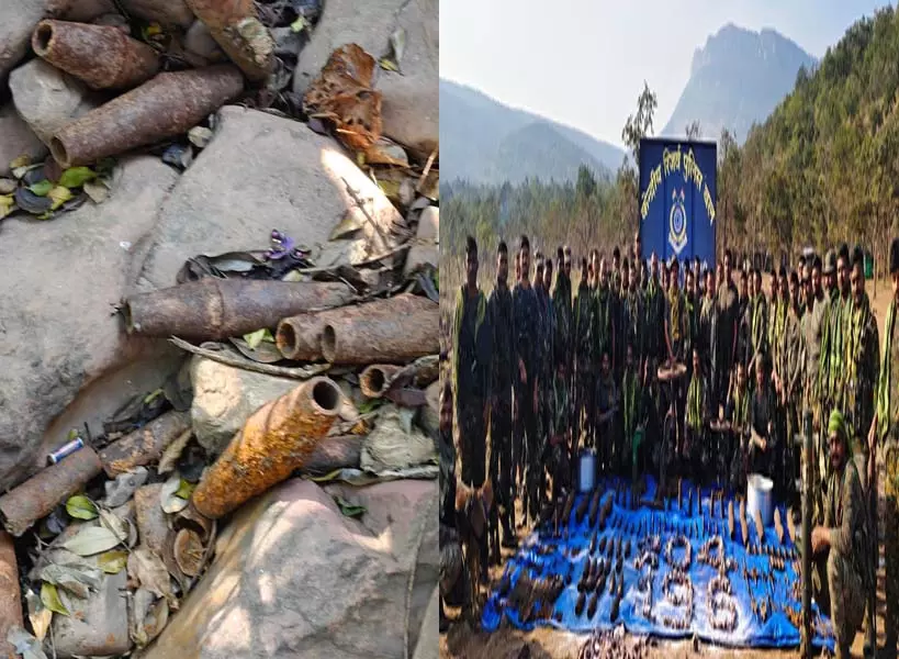 बीजापुर: छत्तीसगढ़ के बीजापुर में सुरक्षा बलों को माओवादियों के खिलाफ बड़ी सफलता हाथ लगी है। सुरक्षा बलों ने सघन सर्च अभियान के दौरान माओवादियों द्वारा जमीन के भीतर छुपाकर रखे गए अवैध हथियार एवं विस्फोटक सामग्री के एक बड़े डम्प का खुलासा किया है। जानकारी के अनुसार, थाना उसूर क्षेत्र अंतर्गत कर्रेगुट्टा हिल्स के डोलीगुट्टा चोटी इलाके में कोबरा 204 एवं सीआरपीएफ 196 की संयुक्त टीम एफओबी ताड़पाला घाटी क्षेत्र के घने जंगलों में सघन तलाशी अभियान चला रही थी। इसी दौरान डोलीगुट्टा चोटी एरिया में संदिग्ध स्थानों की खुदाई करने पर माओवादियों द्वारा छुपाकर रखी गई हथियार मरम्मत सामग्री, बीजीएल सेल निर्माण से जुड़ी सामग्री तथा विस्फोटक उपकरण बरामद किए गए।