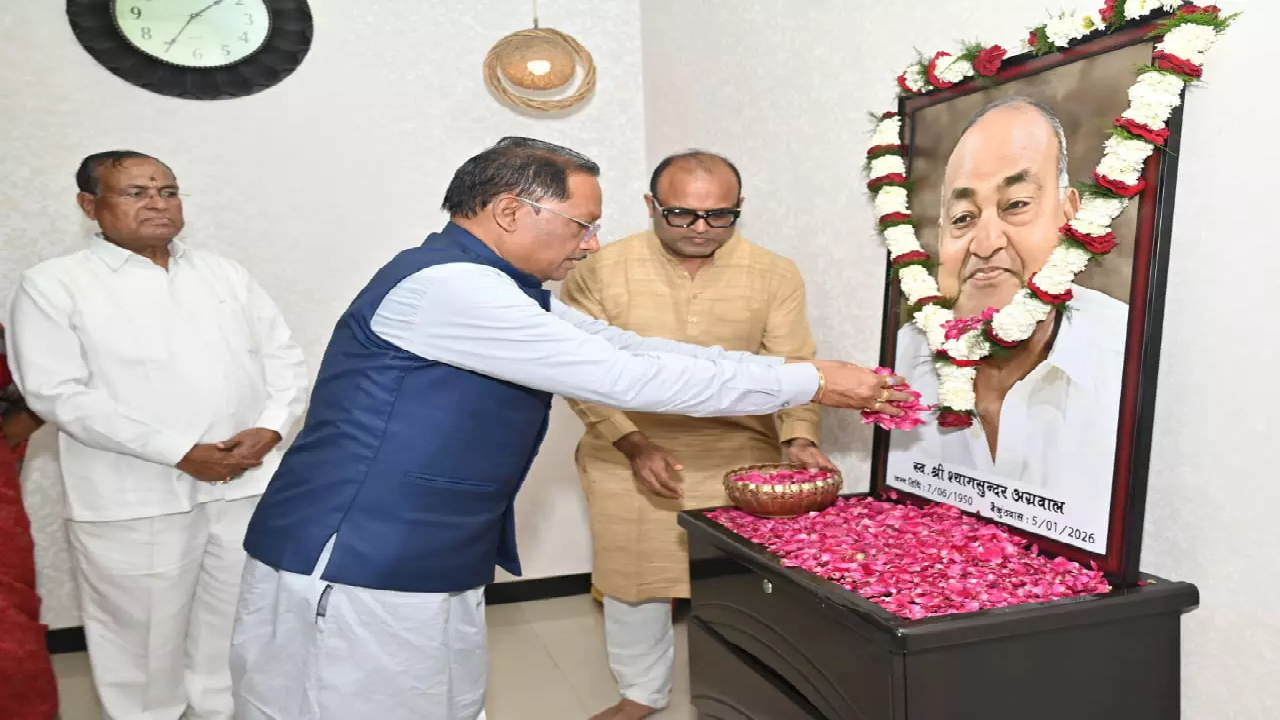 रायपुर। मुख्यमंत्री विष्णु देव साय आज राजधानी रायपुर के खम्हारडीह ( ऐश्वर्या विंड मिल ) स्थित पूर्व विधानसभा अध्यक्ष गौरीशंकर अग्रवाल के निवास पहुंचकर स्वर्गीय श्याम सुन्दर अग्रवाल की पगड़ी रस्म एवं श्रद्धांजलि कार्यक्रम में शामिल हुए। उन्होंने दिवंगत आत्मा की शांति के लिए ईश्वर से प्रार्थना की तथा शोक संतप्त परिजनों के प्रति गहरी संवेदना व्यक्त की। मुख्यमंत्री साय ने इस अवसर पर कहा कि स्वर्गीय श्याम सुन्दर अग्रवाल समाजसेवा एवं मानवीय मूल्यों के प्रति समर्पित व्यक्तित्व थे।