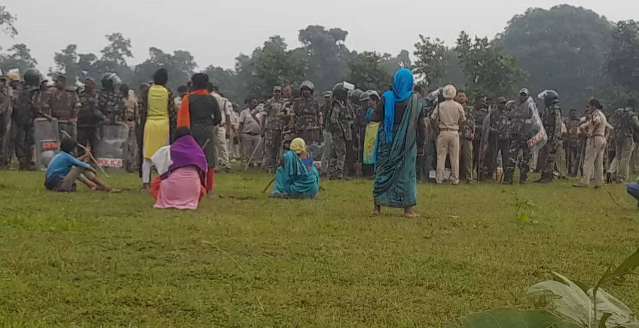 राजस्थान कोल ब्लॉक के लिए पेड़ों की कटाई की जा रही है। इसी दौरान ग्रामीणों ने इसका विरोध किया। इसी बीच ग्रामीणों और पुलिस के बीच तनावपूर्व हो गया। ग्रामीणों ने पुलिस पर तीर के साथ पत्थर और डंडे से हमला कर दिया। जिससे 4 पुलिसकर्मी घायल हो गए। वहीं पुलिस के हमले से एक ग्रामीण भी जख्मी हो गया। घायल पुलिसकर्मी को अस्पताल में भर्ती कराया गया है। सूचना के बाद मौके पर ASP समेत करीब 300 से ज्यादा पुलिस कर्मी तैनात हो गए हैं।