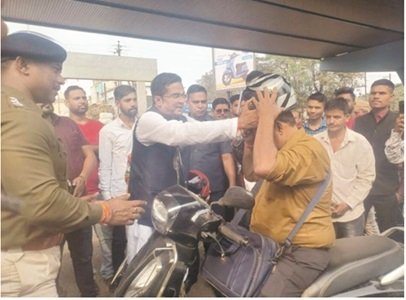 भिलाई सुपेला राष्ट्रीय राजमार्ग पर मौर्या चंद्रा चौराहे पर पुलिस टीम देख जब बिना हेलमेट लगाए कुछ दोपहिया वाहन चालक तेजी से निकलने की जुगत में देखे गए तो कुछ एक दूर से ही वाहन की दिशा बदल निकल भागने सफल भी रहे। जो लोग बिना हेलमेट पुलिस अधिकारी तक पहुंचे उन्हें अचानक सड़क पर विधायक रिकेश सेन भी दिखाई पड़े। ऐसे बाईक चालक और सवारों के बीच पहुंच विधायक ने उन्हें 1 फरवरी से हेलमेट की अनिवार्यता और सुरक्षित जीवन के लिए हेलमेट बगैर वाहन चलाने के ख़तरों के प्रति आगाह करते हुए उनसे हाथ जोड़ न केवल हेलमेट अवश्य लगाने बल्कि उन्हें नि:शुल्क हेलमेट देते हुए अपना जीवन सुरक्षित रखने अपील भी की। आपको बता दें कि कोरोना काल से भी अधिक मौतें सड़क हादसों की वजह से होने की बात कहते हुए वैशाली नगर विधायक आज भिलाई की सड़कों पर उतर कर नि:शुल्क हेलमेट बांटते दिखाई पड़े। उन्होंने कहा कि सड़कों पर आए दिन हो रही दुर्घटनाओं में हो रही मौतों से लोगों और समाज को निजात दिलाने राज्य सरकार द्वारा 1 फरवरी से हेलमेट अवश्य लगाओ अभियान की शुरुआत की गई है