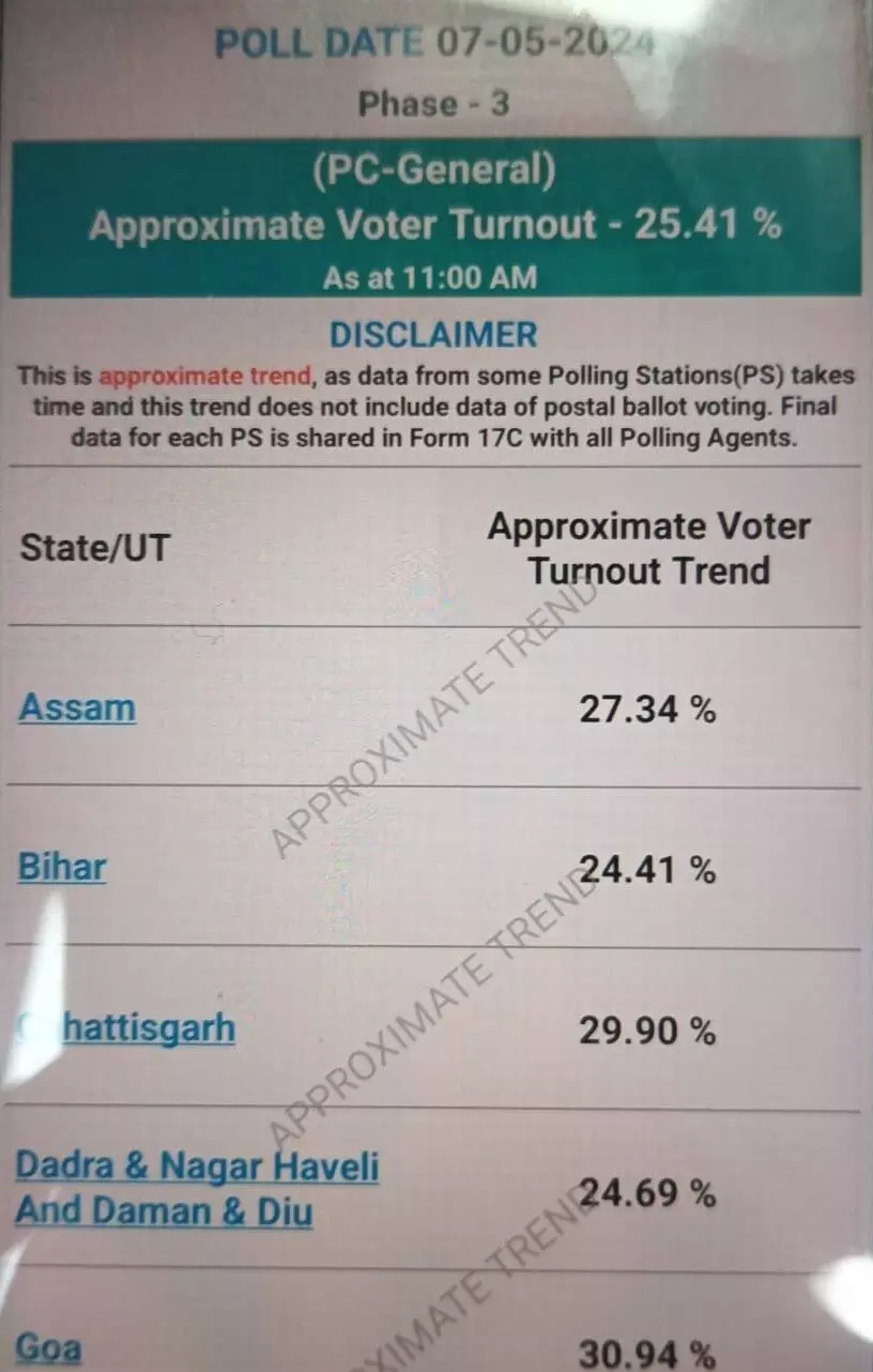रायपुर। 11 बजे तक छत्तीसगढ़ के 7 लोकसभा सीटों पर 29.90 प्रतिशत मतदान हुआ। सबसे ज्यादा मतदान अभी तक रायगढ़ में 32.92% हुआ है। जबकि सबसे कम बिलासपुर में 25.29% मतदान हुआ है। अंतिम चरण के चुनाव में कांग्रेस-भाजपा के दिग्गज नेताओं सहित 168 प्रत्याशी मैदान में हैं। इन प्रत्याशियों की किस्मत 1 करोड़ 39 लाख1 हजार 285 मतदाता तय करेंगे। तीसरे चरण में 82 हजार जवानों की ड्यूटी लगाई गई है। खास बात यह है कि प्रदेश में पहली बार प्राइवेट सिक्योरिटी गार्ड्स को भी चुनाव ड्यूटी में लगाया गया है।