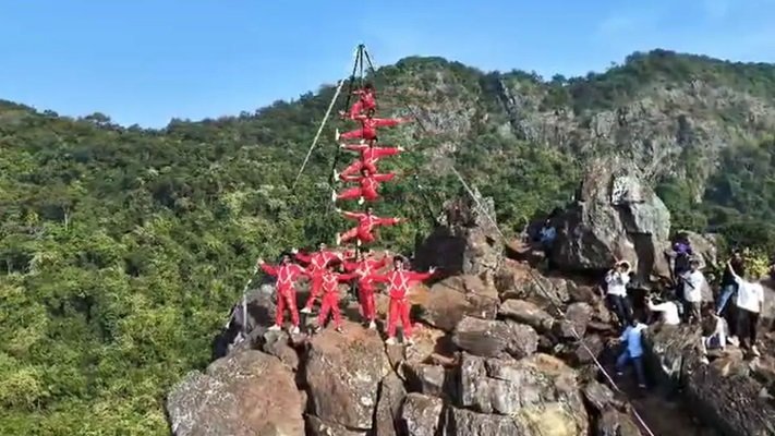 नारायणपुर । छत्तीसगढ़ के अबूझमाड़ की प्रतिभाओं ने नया कीर्तिमान रच दिया है। यहां के मलखंब एकेडमी के बच्चों ने ढोलकल गणेश की प्रतिमा के पास हैरतअंगेज मलखंब का प्रदर्शन किया। टीम के होनहारों ने तीन हजार फीट ऊंची बैलाडिला की पहाड़ी में प्रदर्शन कर साबित कर दिया की कोई भी काम कठिन नहीं है।