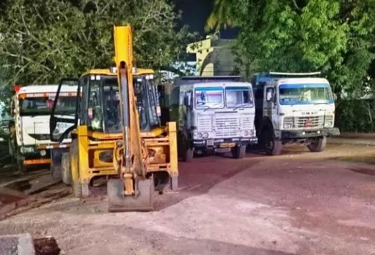 बिलासपुर। खनिज विभाग Department of Minerals की उड़नदस्ता टीम ने बीती रात से लेकर आज सुबह तक अभियान चलाकर अवैध रेत खनन और परिवहन के मामलों में कार्रवाई करते हुए 13 गाड़ियां जब्त की हैं, जिनमें 7 हाईवा हैं। उप संचालक खनिकर्म विभाग डॉ. दिनेश मिश्रा Dr. Dinesh Mishra ने बताया कि टीम ने बीती रात ग्राम लोधीपारा, कोनी, सेंदरी, कछार, लोफंदी, मंगला, धुरीपारा, लोखंडी, निरतू, घुटकू लमेर,नेवरा, कोटा, बोड़सरा, सिरगिट्टी क्षेत्र मे रेत खदान एवं खनिज परिवहन कर रहे वाहनों की सघन जांच की। इस दौरान सेंदरी क्षेत्र में 4 हाईवा एवं लोधीपारा क्षेत्र में 2 ट्रेक्टर को खनिज रेत का अवैध परिवहन करते पाये जाने पर पुलिस थाना कोनी की अभिरक्षा में रखा गया है। chhattisgarh नेवरा क्षेत्र में 3 हाईवा 1 जेसीबी,1 चेन माउंटेड मशीन को खनिज मिट्टी-मुरूम का अवैध उत्खनन एवं कोटा क्षेत्र में 2 ट्रेक्टर को खनिज रेत का अवैध परिवहन करते पाए जाने पर चैन माउंटेड मशीन को सुपुर्दगी में देते हुए अन्य सभी वाहनों क़ो पुलिस थाना कोटा की अभिरक्षा में रखा गया है। वैध अभिवहन पास, रायल्टी पर्ची के बिना खनिजों का उत्खनन और परिवहन किये जाने के कारण सभी 13 वाहन मालिकों व चालकों के विरूद्ध छत्तीसगढ़ गौण खनिज नियम 2015 के नियम 71, खान एवं खनिज (विकास एवं विनियमन) अधिनियम की धारा 21 के तहत प्रकरण दर्ज किया गया है। इसी तरह पिछले सप्ताह भी खनिज जांच चौकी लांवर मस्तूरी में 3 हाईवा को खनिज रेत का एवं 2 माजदा को मिट्टी का अवैध परिवहन करते जब्त किया गया था।