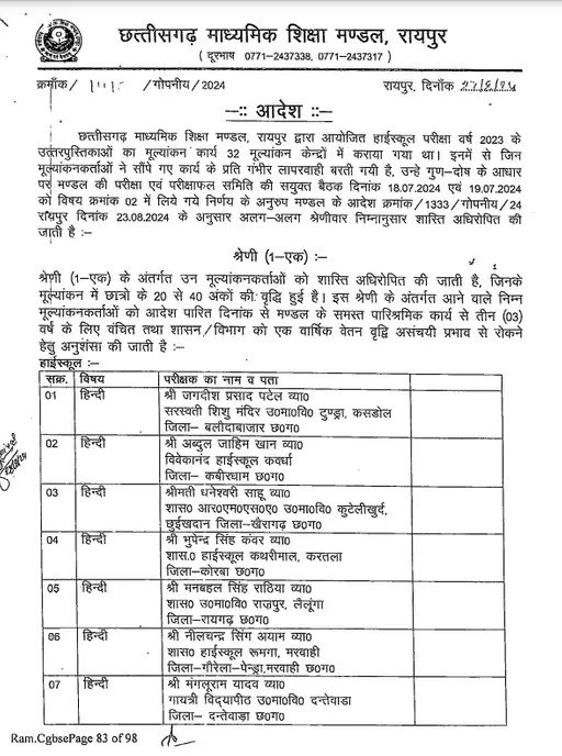 रायपुर। छत्तीसगढ़ में 12वीं के बाद अब कक्षा 10वीं में 59 शिक्षकों को छत्तीसगढ़ माध्यमिक शिक्षा मंडल ने ब्लैकलिस्ट कर दिया है। आंसर शीट चेक करने में लापरवाही बरतने की वजह से इन शिक्षकों को ब्लैक लिस्टेड किया गया है, इसका असर इन शिक्षकों की सालाना वेतन वृद्धि पर भी पड़ेगा। हिन्दी के 5 शिक्षकों ने जो कॉपियां जांची हैं उन उत्तरपुस्तिकाओं में तो 50 से ज्यादा नंबरों की बढ़ोत्तरी हुई है। लापरवाही बरतने वाले शिक्षकों को 3 से 5 साल के लिए माशिमं के समस्त पारिश्रमिक कार्यों के लिए ब्लैकलिस्ट कर दिया गया है।