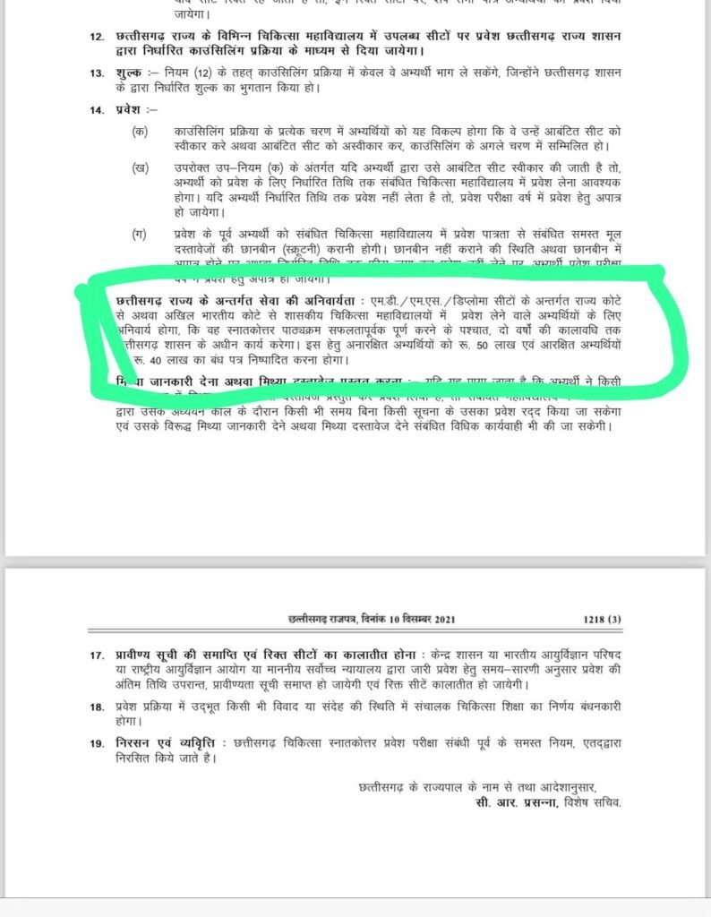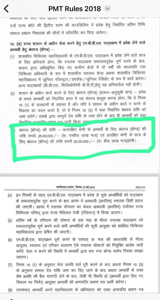 IMA अध्यक्ष डॉ. राकेश गुप्ता ने कहा कि प्रवेश के दौरान नीट UG PG में पच्चीस लाख और 50 लाख के बॉन्ड का जो प्रावधान रखा गया है, इससे छत्तीसगढ़ के मूल निवासी बहुत ज्यादा प्रभावित हैं. प्रतिभावान बच्चे परीक्षा पास करके रैंक तो ले आते हैं लेकिन प्रवेश के दौरान निर्धारित बॉन्ड जमा करने में सक्षम नहीं होते, इसलिए डॉक्टर की पढ़ाई नहीं कर पाते हैं.