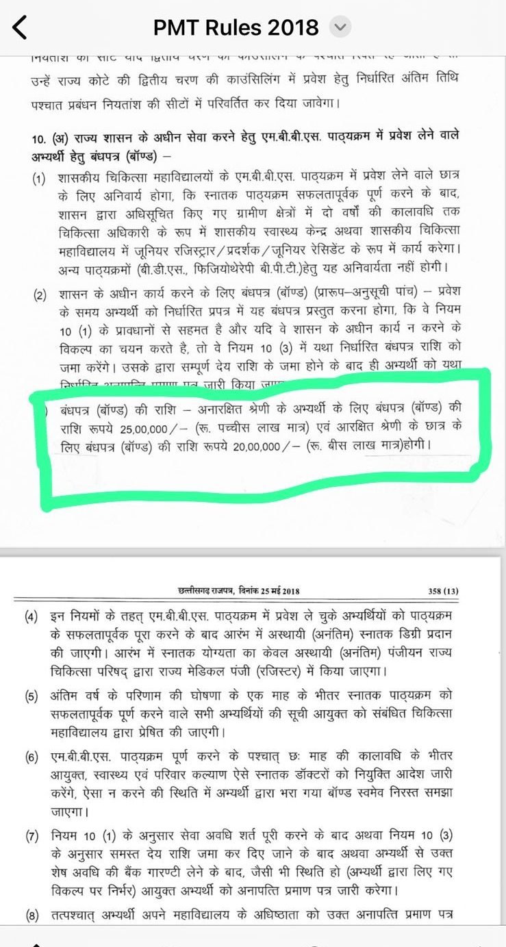 स्वास्थ्य मंत्री श्यामबिहारी जायसवाल ने कहा जो मुझे जानकारी दी गई है. नियम पहले से बना हुआ है. नियम के अनुसार डॉक्टर पढ़ाई करके बॉन्ड अवधि को पूरा नहीं करते और छोड़कर चले जाते हैं इसलिए उनसे बॉन्ड भरवाया जाता है, ताकि वो बॉण्ड सेवा दे सकें. इसके साथ ही स्वास्थ मंत्री ने कितनी-कितनी राशि दी जाती है, यह जानकारी लेने की बात कही है.