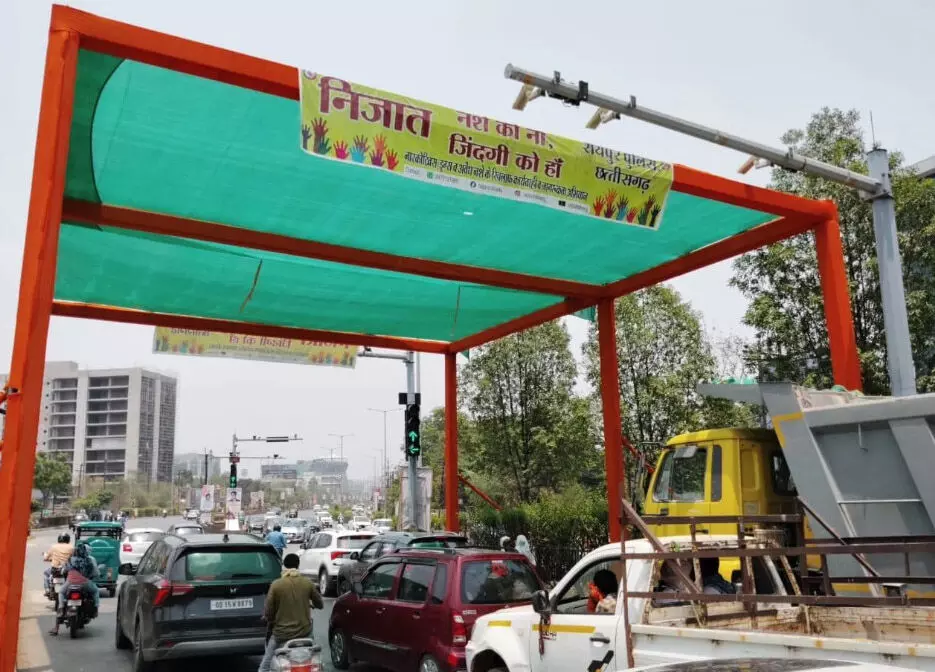 बता दें कि रायपुर शहर में भीषण गर्मी को देखते हुए एसएसपी संतोष कुमार सिंह के निर्देश पर यातायात पुलिस रायपुर द्वारा वाहन चालकों को सिग्नल पर खड़े होने के दौरान धूप से बचाव हेतु सिग्नल लगे चौक पर पंडाल लगाने हेतु किराया भंडार संचालकों से चर्चा किया गया। जिस पर रायपुर शहर के प्रमुख किराया भंडार संचालकों के द्वारा सकारात्मक पहल करते वह वाहन चालकों को धूप से बचाव हेतु यह अच्छा प्रयास है।