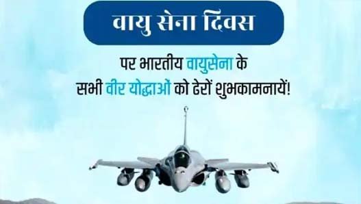 मुख्यमंत्री शिवराज सिंह चौहान ने भारतीय वायु सेना दिवस की शुभकामनाएं दीं हैं। मुख्यमंत्री चौहान ने सोशल मीडिया पर जारी संदेश में कहा कि "नभः स्पृशं दीप्तम" को चरितार्थ करते हुए भारत के मान- सम्मान और गौरव को अनंत ऊंचाइयों तक पहुंचाने वाले भारतीय वायु सेना के सपूतों की असाधारण वीरता, साहस और शौर्य से भारत के नभ सुरक्षित व शत्रुओं के लिए अभेद्य हैं। भारतीय वायु सैनिकों की बहादुरी और राष्ट्र के प्रति समर्पण का भाव अभिनंदनीय है।