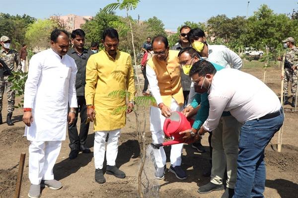 मुख्यमंत्री शिवराज सिंह चौहान ने स्मार्ट सिटी पार्क में जल संसाधन मंत्री तुलसीराम सिलावट, विधायक पृथ्वीपुर शिशुपाल यादव तथा ग्राम प्रभात संस्था के प्रतिनिधियों के साथ गुलमोहर और करंज का पौधा लगाया।