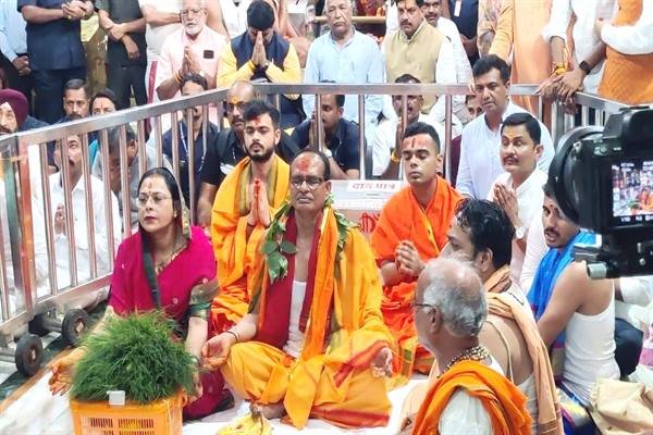 मुख्यमंत्री श्री शिवराज सिंह चौहान ने धर्मपत्नि श्रीमती साधना सिंह, पुत्र श्री कार्तिकेय सिंह एवं श्री कुणाल सिंह के साथ श्रावण माह के तृतीय सोमवार 24 जुलाई को उज्जैन में श्री महाकालेश्वर मंदिर में महाकाल भगवान का अभिषेक किया। मुख्यमंत्री ने सबके कल्याण, स्वास्थ्य, सुखमय जीवन के लिए संपूर्ण सृष्टि के कल्याण के साथ-साथ जीव चराचर के कल्याण की भी कामना की।