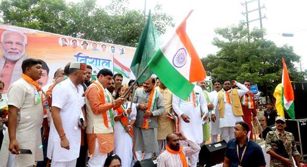 मुख्यमंत्री डॉ. यादव ने भारत माता की प्रतिमा पर पुष्पांजलि अर्पित कर किया तिरंगा यात्रा को रवाना