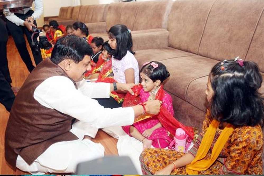 मुख्यमंत्री डॉ. यादव ने कन्या-पूजन के बाद कन्याओं को स्वयं अपने हाथों से भोजन परोसा और उनकी रूचि के अनुरूप मिष्ठान भी खिलाये। मुख्यमंत्री डॉ. यादव ने कन्या भोज के बाद सभी कन्याओं को दक्षिणा और उपहार देकर उनका आशीर्वाद लिया।