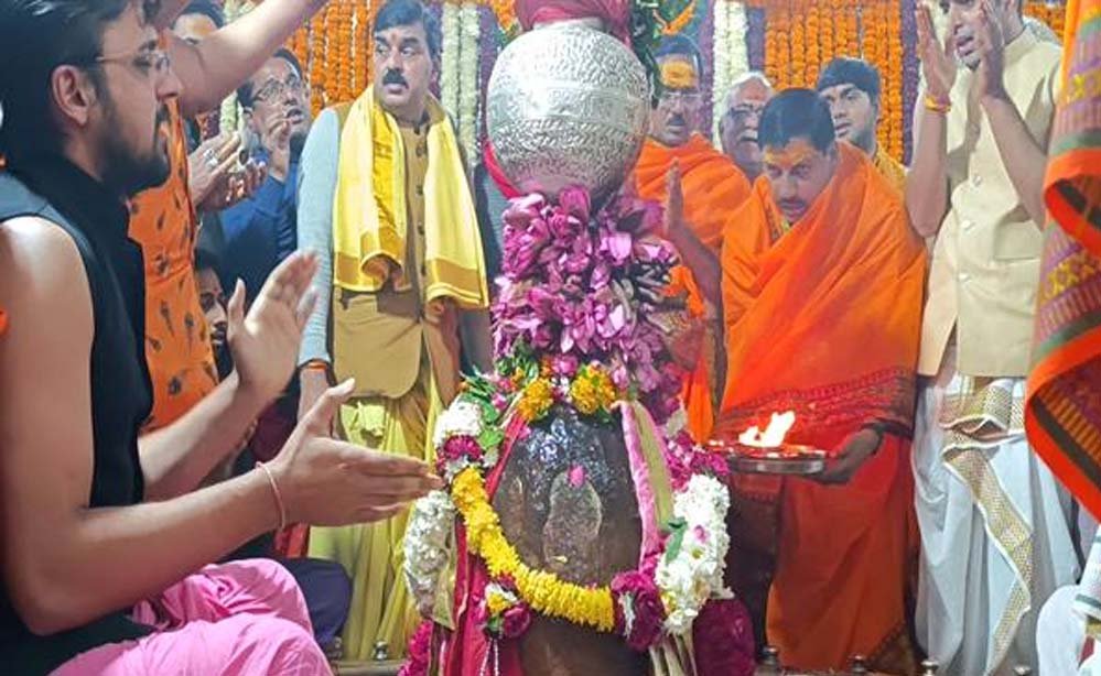 मुख्यमंत्री डॉ.मोहन यादव ने बुधवार को भोपाल में पद एवं गोपनीयता की शपथ ग्रहण करने के बाद उज्जैन पहुँच कर महाकालेश्वर मन्दिर में भगवान महाकाल के दर्शन कर पूजन-अर्चन किया। पूजन-अर्चन पं. राजेश पुजारी, पं. आकाश पुजारी, पं. यश गुरू, पं. अर्पित पुजारी, पं. राघव पुजारी, पं. महेश पुजारी आदि ने करवाया। नन्दी हॉल में मुख्यमंत्री डॉ. यादव को कलेक्टर कुमार पुरुषोत्तम एवं अपर कलेक्टर एवं प्रशासक संदीप सोनी ने भगवान महाकाल का चित्र प्रतीक स्वरूप भेंट किया। इस अवसर पर उज्जैन उत्तर विधायक अनिल जैन कालूहेड़ा सहित वरिष्ठ प्रशासनिक अधिकारी उपस्थित थे