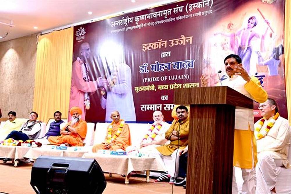 मुख्यमंत्री डॉ. यादव ने कहा कि उन्हें भक्तिचारू महाराज का पुण्य स्मरण हो रहा है। आध्यात्मिक आनन्द की अनुभूति भी हो रही है। भक्तिवेदांत स्वामी प्रभुपादजी ने अन्तर्राष्ट्रीय स्तर पर भगवान श्रीकृष्ण और कृष्ण भावनामृत का प्रचार किया। यह अत्यन्त गौरव का विषय है कि इस्कॉन के माध्यम से कई देशों में भगवान श्रीकृष्ण, उनकी लीलाएं तथा उनके जीवन प्रसंगों तथा श्रीमदभगवद गीता का व्यापक प्रचार-प्रसार हुआ है।