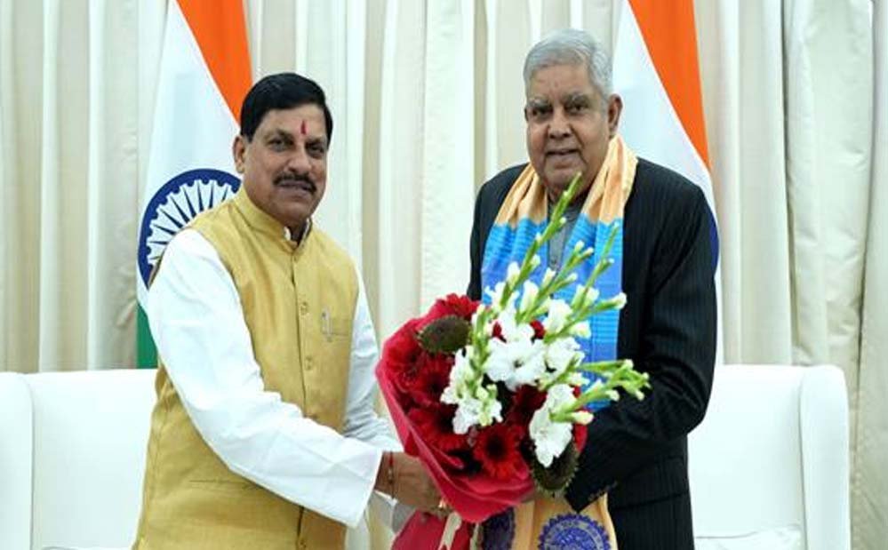 उपराष्ट्रपति जगदीप धनखड़ से मुख्यमंत्री डॉ. मोहन यादव ने आज दिल्ली प्रवास के दौरान उनके आधिकारिक निवास पर सौजन्य भेंट की। मुख्यमंत्री डॉ. यादव ने उपराष्ट्रपति धनखड़ का पुष्पगुच्छ और अंगवस्त्र भेंट कर अभिवादन किया। यह डॉ. यादव की मुख्यमंत्री का पदभार ग्रहण करने के बाद उपराष्ट्रपति से पहली भेंट थी।