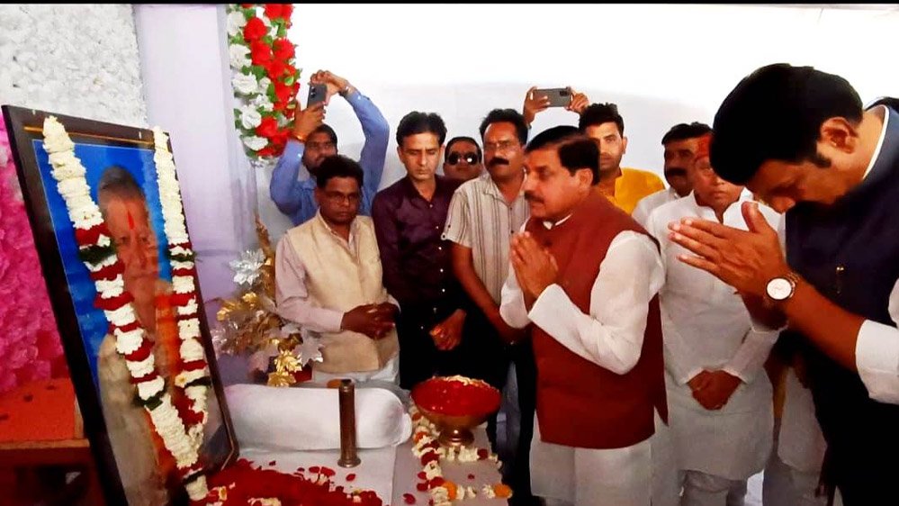 मुख्यमंत्री डॉ. मोहन यादव ने सागर जिले के मकरोनिया रजाखेडी में पंचदेव मंदिर स्थित नरयावली विधायक इंजी. प्रदीप लारिया के निवास पहुंचकर उनके दिवंगत पिता स्व. कुदउँ लारिया जी के चित्र पर पुष्प अर्पित कर श्रद्धांजलि दी।