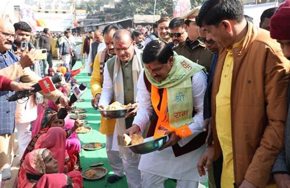 मुख्यमंत्री डॉ. यादव ने जनप्रतिनिधियों के साथ रामराजा दरबार में चल रहे भंडारे में शामिल होकर भोजन प्रसादी ग्रहण की।