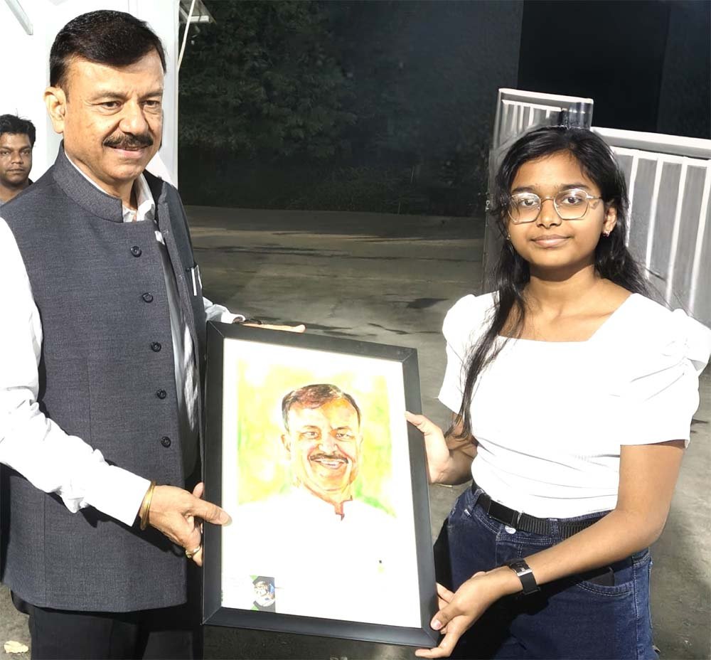 प्रदेश की उभरती हुई बाल चित्रकार सुश्री शीतल गुप्ता ने स्कूल शिक्षा मंत्री श्री उदय प्रताप सिंह को उनका चित्र सोमवार को उनके भोपाल स्थित निवास पर पहुँचकर भेंट किया। स्कूल शिक्षा मंत्री ने सुश्री शीतल की अद्भुत कला प्रतिभा की सराहना करते हुए कहा कि उनकी कला न केवल प्रदेश, बल्कि पूरे देश के लिए गर्व की बात है।