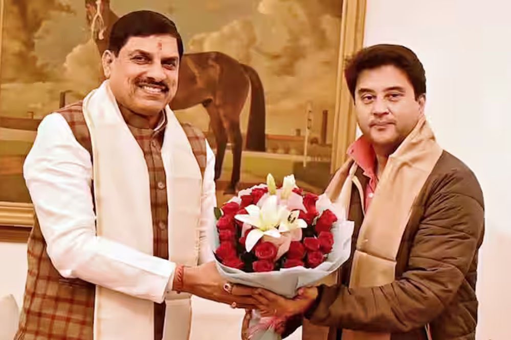 मध्य प्रदेश के मुख्यमंत्री डॉ मोहन यादव और केंद्रीय मंत्री ज्योतिरादित्य सिंधिया की आधे घंटे तक वार्तालाप हुई. जब मुख्यमंत्री डॉ मोहन यादव और सिंधिया की मुलाकात हुई तो केंद्रीय मंत्री सिंधिया ने गुलदस्ता देकर डॉक्टर मोहन यादव का अभिनंदन किया, जिसके बाद मुख्यमंत्री डॉ यादव ने सिंधिया को दुपट्टा पहन कर उनका स्वागत किया.