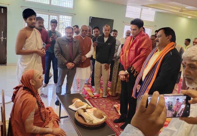 राज्य शासन के राजकीय अतिथि एवं यडतोरे श्री योगानंदेश्वर सरस्वती मठ मैसूर के मठाधिपति श्री श्री शंकर भारती महास्वामी से गुरुवार को दद्दा धाम में पहुंचकर कलेक्टर अवि प्रसाद और पुलिस अधीक्षक सुनील कुमार जैन ने भेंट किया।