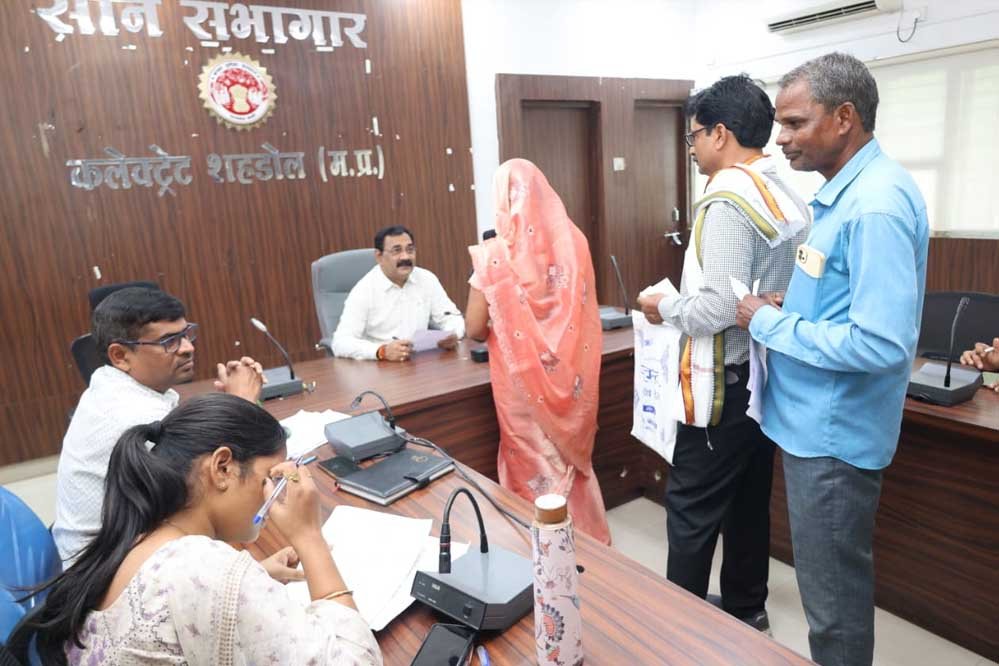 कलेक्टर डॉ. केदार सिंह ने आज कलेक्टर कार्यालय के सोन सभागार में आयोजित साप्ताहिक जनसुनवाई में शहडोल जिले के दूर-दराज क्षेत्रों से आए लोगों की समस्याएं व शिकायतें सुनी तथा निराकरण के निर्देश संबंधित अधिकारियों को दिए। जनसुनवाई में  शहडोल जिले के ग्राम कुदरी निवासी कुवरिया बैगा ने पीएम किसान सम्मान निधि का पैसा दिलाने, ग्राम दियापीपर निवासी मो. अब्दुला ने  विद्युत कनेक्शन  राशि की रसीद दिलाने, शहडोल वार्ड नम्बर 28 निवासी  राकेश चक्रधारी ने  आधार अपडेट कराने, शहडोल वार्ड नंम्बर 18 निवासी फिरोज खान ने भगवती इंडिया मोटराइजर शो रूम से किये गए कार्यों का परिश्रमिक भुगतान कराने हेतु आवेदन कलेक्टर डॉ केदार सिंह को दिए। जिस पर कलेक्टर ने प्राप्त आवेदनों के निराकरण हेतु संबंधित विभाग के अधिकारी की ओर आवेदन प्रेषित कर शीघ्रता के साथ निराकरण करने के निर्देश दिए। जनसुनवाई में अन्य प्राप्त आवेदनों को कलेक्टर ने संबंधित विभाग के अधिकारियों की ओर प्रेषित कर शीघ्र निराकरण करने के निर्देश दिए।   जनसुनवाई में अनुविभागीय अधिकारी राजस्व सोहागपुर श्री अरविंद शाह, डिप्टी कलेक्टर श्री भागीरथी लहरे सहित अन्य विभागीय अधिकारी उपस्थित थें।