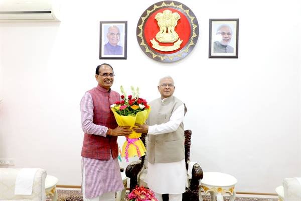 राज्यपाल मंगुभाई पटेल से मुख्यमंत्री शिवराज सिंह चौहान ने आज राजभवन पहुँच कर सौजन्य भेंट की। राज्यपाल का मुख्यमंत्री ने पुष्प-गुच्छ भेंट कर अभिनंदन किया।