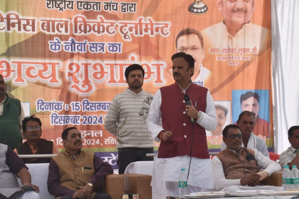 उप मुख्यमंत्री राजेन्द्र शुक्ल ने कहा कि खेल एकता के सूत्र में बांधने का कार्य करते हैं। मेरे स्वर्गीय पिताजी की स्मृति में आयोजित किये जा रहे टूर्नामेंट के आयोजक साधुवाद के पात्र हैं, जो पिताजी के प्रति श्रद्धा भाव रखकर प्रतिवर्ष इस टूर्नामेंट का आयोजन कर रहे हैं। शुक्ल ने राष्ट्रीय एकता मंच द्वारा आयोजित टेनिस बाल क्रिकेट टूर्नामेंट का शुभारंभ किया।
