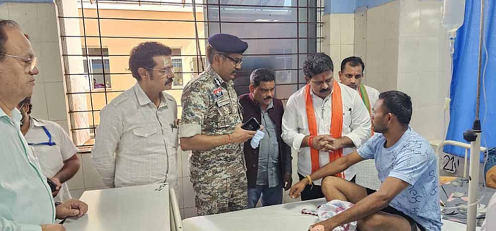 ग्रामीण से मिलने के बाद उपमुख्यमंत्री विजय शर्मा ने घायल जवान के पास पहुँचे। जहाँ जवान ने बताया कि वह जिस टीम में चल रहा था उसमें चौथे नंबर पर था, तीन जवानों के निकलने के बाद जैसे ही पहुँचा भालू ने हमला कर दिया। जिस पर उपमुख्यमंत्री ने कहा कि पहले यहां से ठीक होकर आओ, फिर मैदान में मिशन को पूरा करेंगे। इस दौरान घायलों को फल भी वितरण किया गया। इस दौरान चित्रकोट विधायक विनायक गोयल, महापौर संजय पांडे के अलावा अन्य जनप्रतिनिधियों के साथ ही आईजी बस्तर सुंदरराज पी, एसपी शलभ सिन्हा, अतिरिक्त पुलिस अधीक्षक महेश्वर नाग आदि मौजूद रहे।