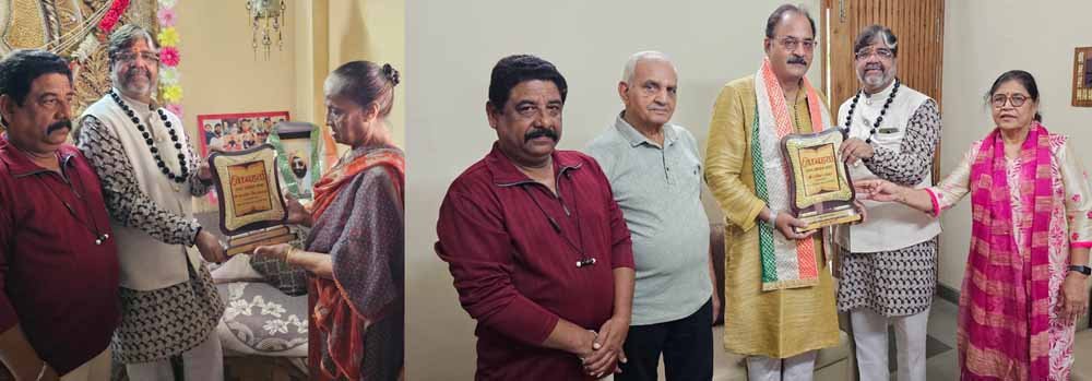 गणेश आरती को मानव सेवा से जोड़ने की कड़ी में आज कृष्णा मिश्रा गुरुजी शहीद बलबीर सिंह छाबड़ा के यहां पहुंचे जिनके प्राण राष्ट्र गीत गाते गाते स्टेज पर निकले । उनकी पत्नी गुरविंदर कोर छाबड़ा को विध्नहर्ता 2024 राष्ट्र भक्ति के लिए उनके मरणोपरांत दी।साथ ही उनकी पत्नी को 51000 कृतज्ञता राशि की घोषणा की। साथ ही समाज,शहर प्रमुख,प्रदेश प्रमुख, से आग्रह किया ऐसे दिवंगतो के घर जाए।